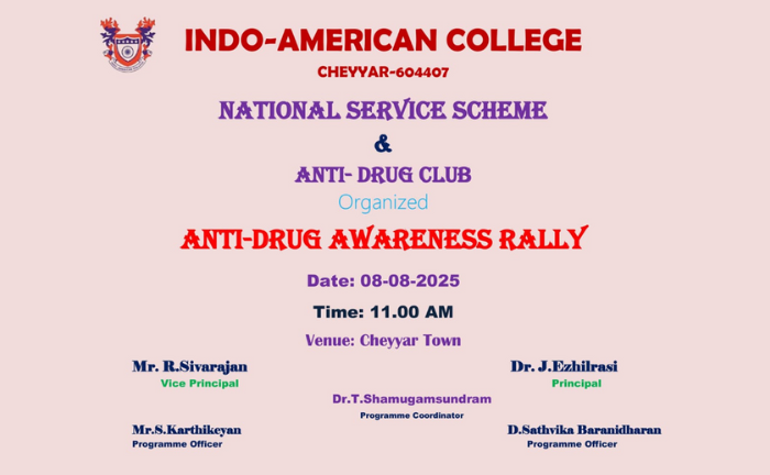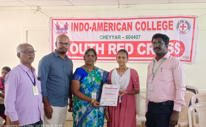 The Youth Red Cross (YRC) is one of the vital wings of the Indian Red Cross Society, specifically focused on college students aged between 18 and 25 years. At Indo-American College, YRC operates under the guidance of Mr. S. Senthil, Assistant Professor, Department of Mathematics, who serves as the Programme Officer. The students, under his mentorship, take responsibility for managing the group’s activities and electing their own office-bearers, fostering leadership and organizational skills.